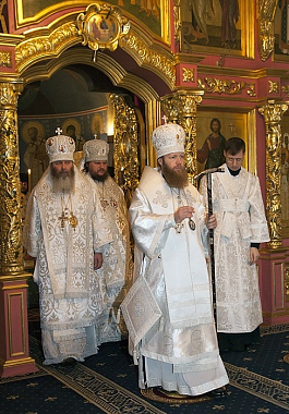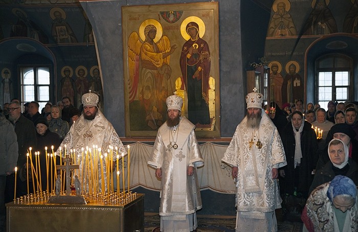 Архипастырям сослужили: братия обители в священном сане; протоиерей Владимир Чувикин, настоятель храмов Николо-Перервинского монастыря, ректор Перервинской Православной семинарии; протоиерей Максим Первозванский, клирик храма 40 мучеников Севайстийских; духовенство Москвы и Костромы.