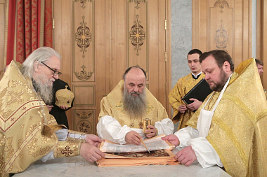 После сугубой ектении Святейший Владыка вознес молитву о мире на Украине.