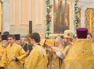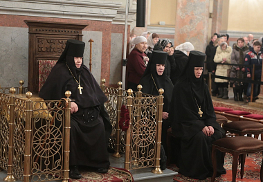 Богослужебные песнопения исполнил праздничный хор Иоанно-Предтеченского монастыря (регент – Ирина Девяткина).