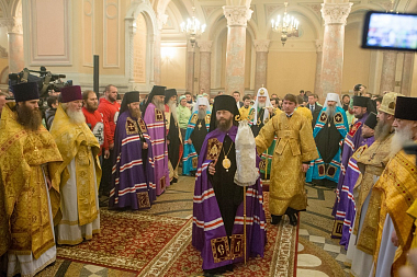 Также Предстоятелю Русской Церкви сослужили архиереи Сербской Православной Церкви: епископ Бачский Ириней; представитель Патриарха Сербского при Московском Патриаршем Престоле епископ Моравичский Антоний; епископ Крушевацкий Давид и епископ Егарский Иероним.