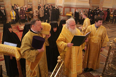 Накануне, 20 декабря, митрополит Арсений совершил Всенощное бдение в соборе Усекновения главы Иоанна Предтечи Иоанно-Предтеченского ставропигиального женского монастыря Москвы.