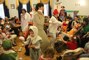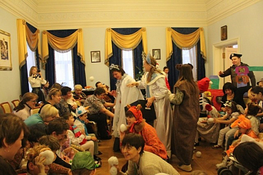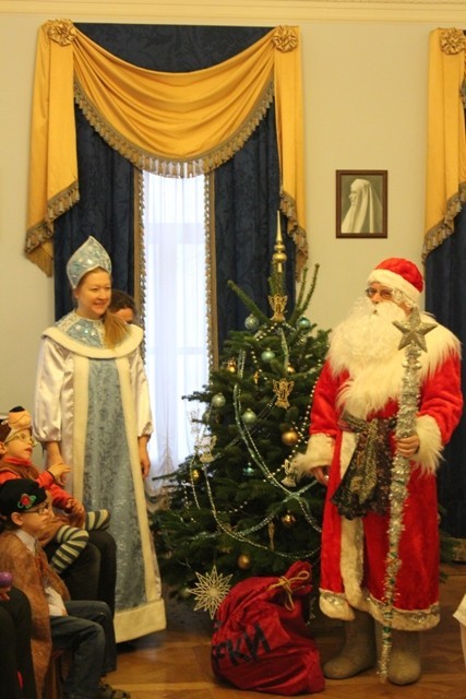 В ставропигиальном женском монастыре Марфо-Мариинская обитель милосердия в канун Нового года и Рождества воспитатели группы дневного пребывания для детей-инвалидов устроили своим подопечным праздник.