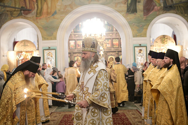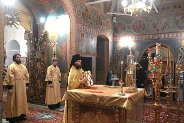 Накануне, 2 января, за Всенощным бдением в Сергиевском храме обители прихожане и паломники пели акафист святителю Петру.