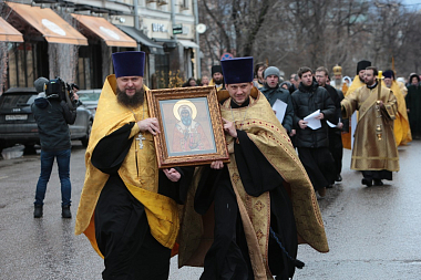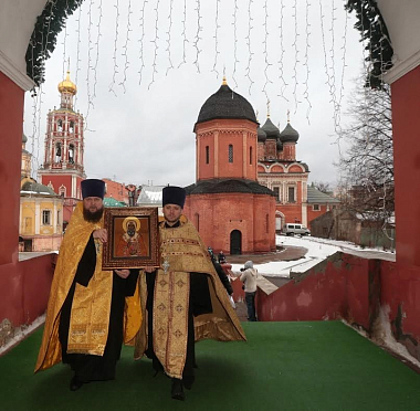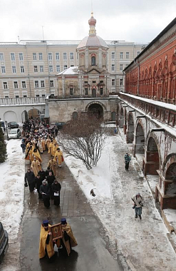 По окончании Литургии был совершен крестный ход вокруг монастыря по Петровскому бульвару, улице Петровке и Крапивенскому переулку.