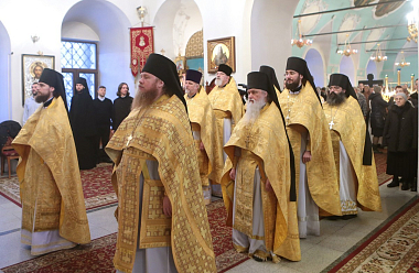 3 января праздничную Божественную литургию в монастыре возглавил архиепископ Сергиево-Посадский Феогност, Председатель Синодального отдела по монастырям и монашеству.