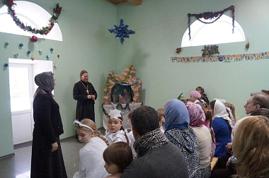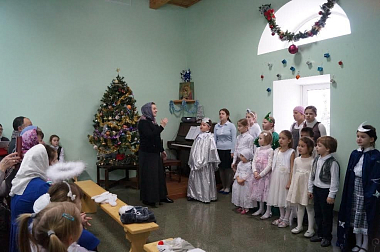 Дети рассказали сестрам и прихожанам монастыря о Рождестве Христовом, исполнили рождественские песнопения и колядки, показали поучительную сказку по мотивам всеми любимой с детства песни «В лесу родилась елочка». Эта каждому знакомая история представила повод поразмышлять о смысле жизни, Премудром Промысле Божием и о непреходящей ценности каждого самого скромного и маленького создания. Мудрый дедушка Мороз с доброй внучкой Снегурочкой провели для детей увлекательные конкурсы и вручили всем гостям памятные призы и сладкие подарки.