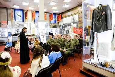 Учащиеся Воскресной школы готовились к этому событию: разучивали стихи, песни, писали поздравительные письма-открытки. Небольшой детский концерт предварил помощник благочинного Донской обители, ответственный за духовное окормление военнослужащих игумен Никита (Вихляев), обратившийся с поздравительным словом ко всем присутствующим и рассказавший об истории праздника, церковных Таинствах.