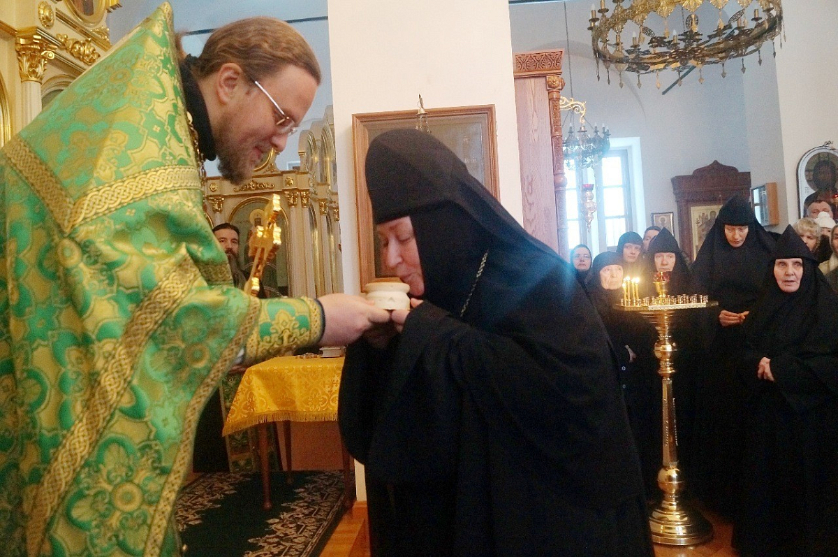 В этот день в монастыре было совершено торжественное богослужение, по окончании которого игумению Марию поздравили старший священник Аносиной обители иеромонах Адриан, сестры и прихожане.