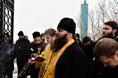 Затем паломники отправились на городское кладбище, где покоятся родители Патриарха и его братья. Игумен Парамон отслужил панихиду в сослужении братии Донского монастыря и местных священников.