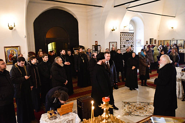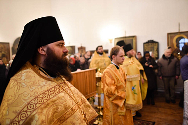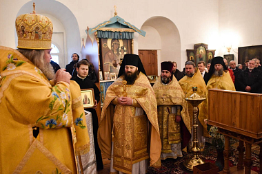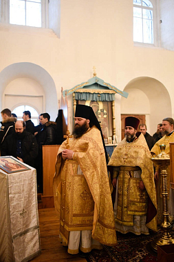 В храме Воскресения Господня, в котором был крещен будущий святитель, делегация Донского монастыря приняла участие в общей молитве за Божественной литургией, которую возглавил епископ Великолукский и Невельский Сергий. Ему сослужили: игумен Парамон, наместник Донского монастыря с братией; игумен Савватий, благочинный Великолукского округа, настоятель Свято-Вознесенского кафедрального собора г. Великие Луки, а также представители местного духовенства.
