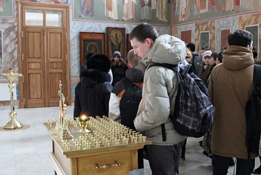 Перед началом концерта сестры монастыря провели для ребят и их преподавателей небольшую экскурсию, познакомившую их с житием преподобных Кирилла и Марии, родителей преподобного Сергия, Православной верой и историей Покровского Хотькова монастыря.