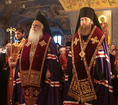 По окончании молебна епископ Воскресенский Савва поблагодарил Высокопреосвященнейшего митрополита Пантелеимона за возможность поклониться святым мощам Димитрия Мироточивого в Новоспасской обители: