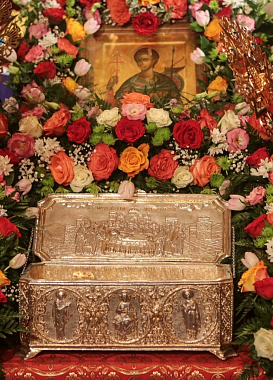 «Пребывание в Новоспасской обители ковчега с честными мощами святого Димитрия Солунского – это милость и благодать Божия, которую нам являет Господь. Ведь ревность о Боге военачальника Димитрия была столь велика, что его называли вторым апостолом Павлом. Эта святыня прибыла в Россию в год 70-летия Великой Победы над фашизмом.
