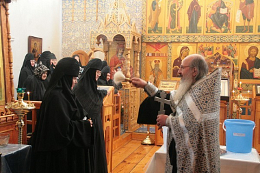 Накануне вечером в Казанском соборе были отслужены вечерня, повечерие и полиелейная утреня.