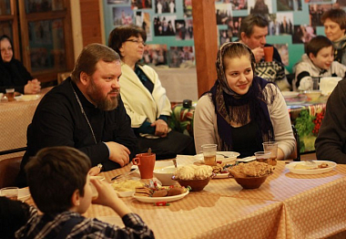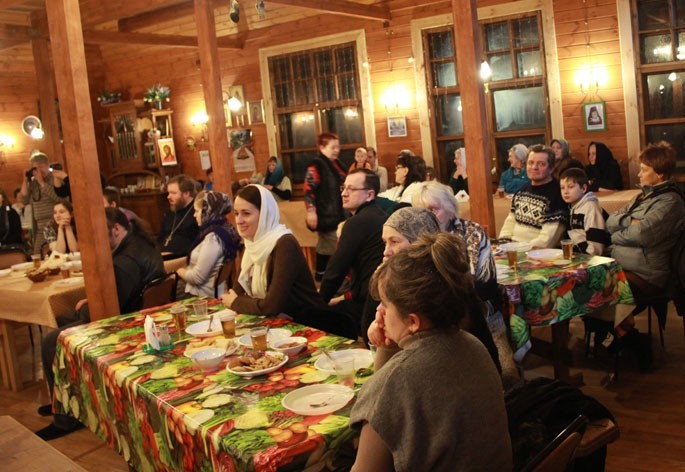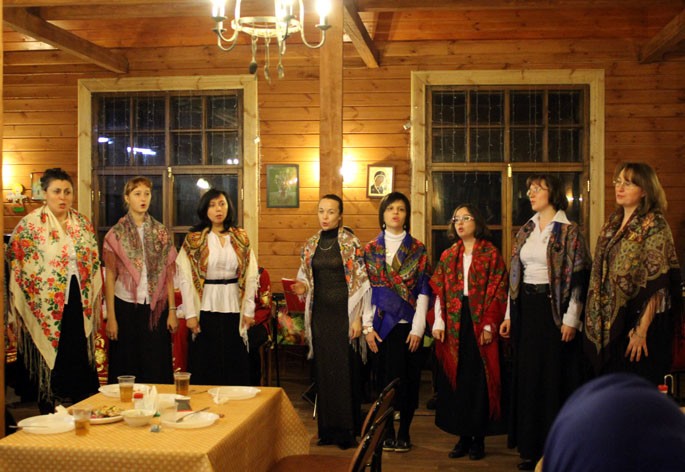 За чашкой чая с блинами шел разговор о масленице и традициях, связанных с неделей перед Великим постом. Продолжая тему масленицы и народного веселья, хор «Воскресение» представил слушателям песни «Подмосковные вечера» и «Московскую кадриль», а приглашенный оркестр народных инструментов «Сувенир» – народные казацкие песни, уральскую плясовую, «Светит месяц, светит ясный» и другие.