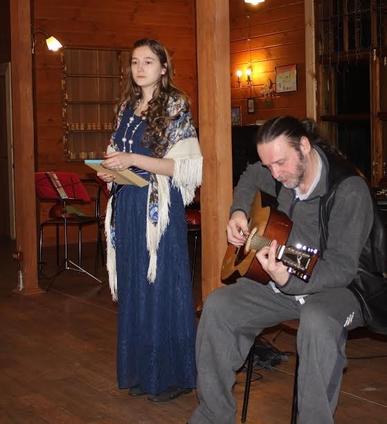 Затем выступил хор «Воскресение» православного творческо-просветительского центра «Купель». Участницы хора прочитали стихотворение И.А. Бродского «Сретение», а Татьяна Круглова, воспитанница студии «Глаголь-Добро» исполнила две песни: «Слово мама дорогое...» и «Балладу о трех сыновьях». В исполнении Маши Давыдовой прозвучала песня «Все в этом мире Богу славу поет с утра до темноты...»