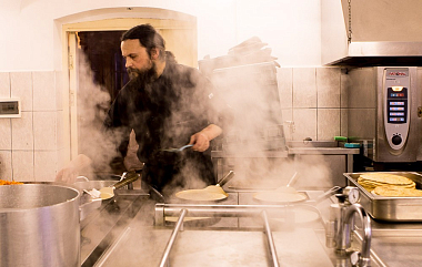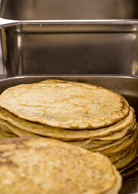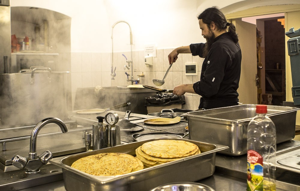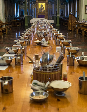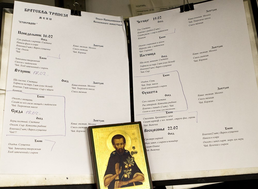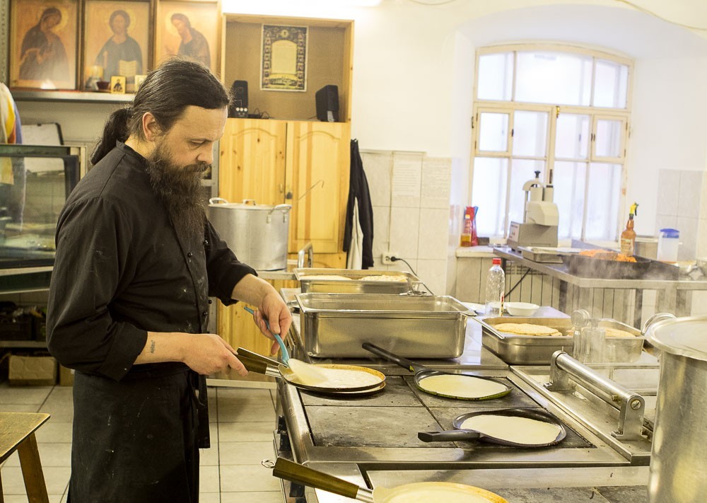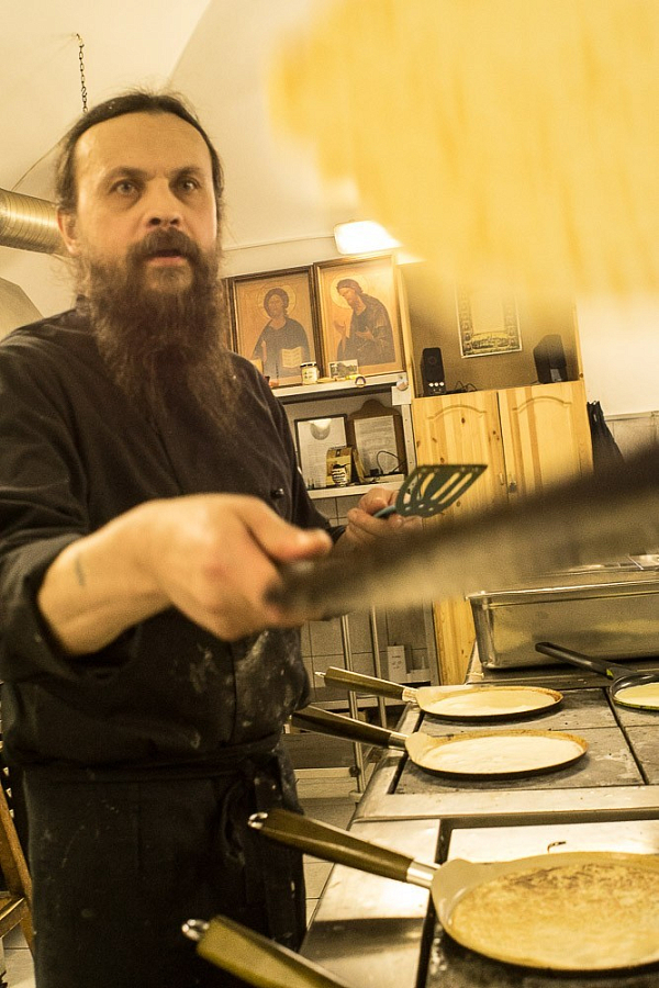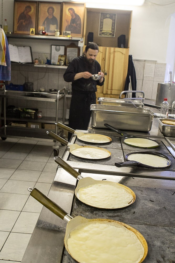 В Спасо-Преображенском Валаамском ставропигиальном мужском монастыре всю сплошную седмицу перед Великим постом пекут блины, поскольку для братии наступают последние скоромные дни. Учитывая количество насельников монастыря, трудников, богомольцев и гостей Валаамской обители, трапезная монастыря начинает свою работу сразу после полунощницы. Блины пекутся в течение всей масленицы и на каждый обед подаются с творогом и вареньем, сметаной и молоком. Главное, конечно же, заключается в том, что блины пекут с молитвой и желанием укрепить каждого человека перед Великим постом.