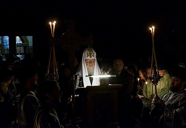 По окончании службы Предстоятель Русской Церкви обратился к верующим с проповедью.