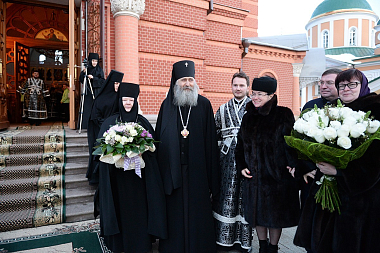 За богослужением молились: Председатель Синодального отдела по монастырям и монашеству, наместник Троице-Сергиевой лавры архиепископ Сергиево-Посадский Феогност; Заместитель Председателя Синодального отдела по монастырям и монашеству, настоятельница Зачатьевского ставропигиального женского монастыря Москвы игумения Иулиания (Каледа); настоятельница Покровского Хотькова ставропигиального женского монастыря игумения Олимпиада (Баранова); насельницы обители и воспитанницы монастырского приюта; глава городского поселения Хотьково Р.Г. Тихомирова; Председатель Совета депутатов Сергиево-Посадского района В.Н. Коротков и многочисленные гости обители.