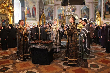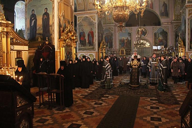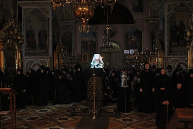 Литургия Преждеосвященных Даров была совершена Высокопреосвященнейшим Варфоломеем в сослужении монастырского духовенства.