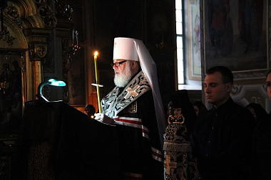 Накануне, 26 февраля, в четверг вечером, владыка Варфоломей совершил великое повечерие с чтением Великого покаянного канона прп. Андрея Критского.
