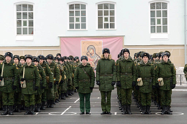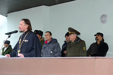 Слова поздравления от имени Донского монастыря произнес отец Никита. Батюшка благословил военнослужащих полка, пожелав им помощи Божией.