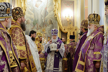 После сугубой ектении Предстоятель Русской Православной Церкви вознес молитву о мире на Украине.