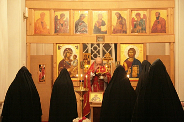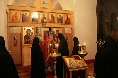 В этот день архимандрит Поликарп совершил в Казанском соборе раннюю Божественную литургию, во время которой причащались настоятельница Шамординской обители игумения Сергия (Щербакова) с сестрами.