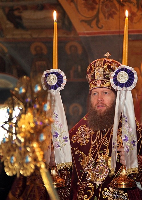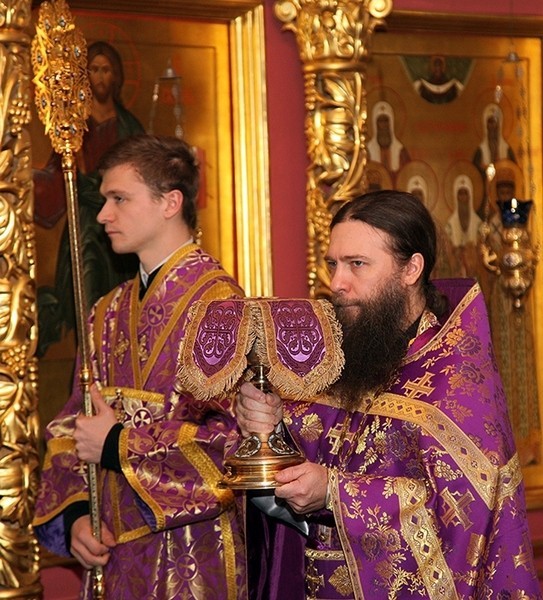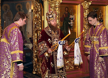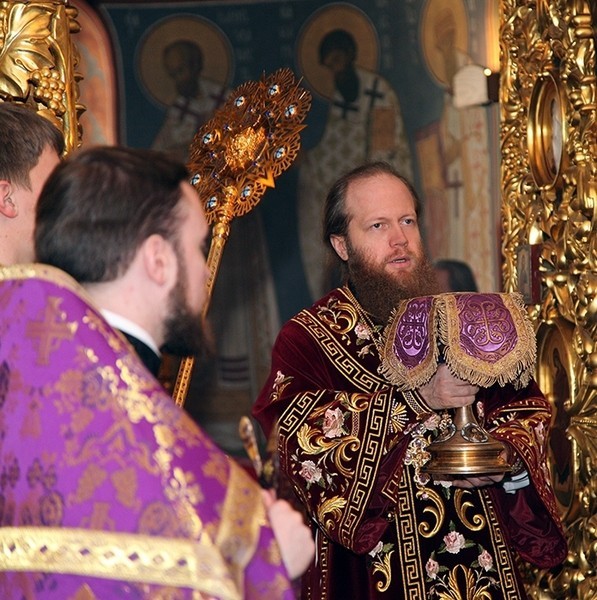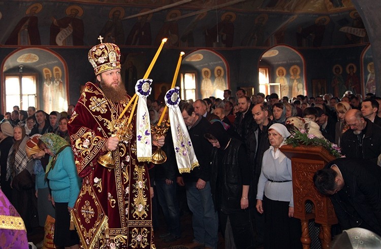 По окончании богослужения епископ Воскресенский Савва поклонился Честному и Животворящему Кресту Господню и обратился к верующим с архипастырским словом.