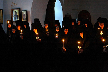 Дорогая матушка игумения, сестры, поздравляю всех с совершившимся сегодня Таинством обетов пред Богом новых, новоначальных монахинь. Поздравляем сестер, которые пришли ко Христу и дали свои обеты. Вступив в сей подвиг, в сей образ жизни, вы вступили на подвиг покаяния, на подвиг исправления своей жизни, своего сердца, своего ума, стяжания ума Христова, стяжания чистоты сердечной и нищеты духовной.