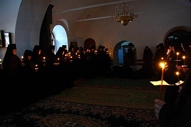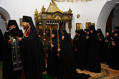 «Хочу поздравить вас с радостным для обители событием, особенно поздравить тех, кто сподобился принятия ангельского и иноческого образа. Хочется пожелать новопостриженным и всем сестрам монастыря не стремиться к чему-то невозможному, непосильному, а стремиться к смирению сердца, покаянию, исповеданию своих помыслов, грехов, к чистоте сердечной и смиренному мудрованию о себе. Чем больших духовных высот человек достигает, тем становится смиренней, тем больше понимает, что пред Богом он ничто, и не кичится своими какими-то очень маленькими, мнимыми добродетелями.