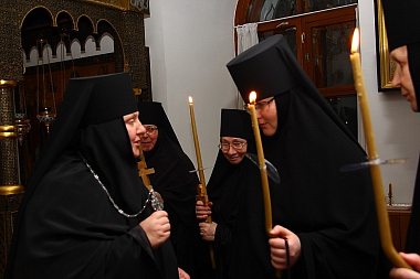 Всем хочется пожелать радости. Мы ощутили особенную радость при совершении постригов. Радость подают нам и дни Великого поста – время необыкновенное, которое уже скоро закончится, и кто знает, доживем ли мы до следующего поста, или в каком состоянии кто из нас будет: может быть, кто-то будет сильно болеть и не сможет посещать такие чудесные службы. Поэтому вам надо запомнить этот день, его особую благодать, мысленно возвращаться к этому событию, потому что в этот день у вас была особая ревность, она пребудет с вами еще какое-то время, потом начнет умаляться, начнут бороть какие-то страсти. Но память о благодати, данной в постриге, будет помогать жить дальше, когда искушения усилятся.