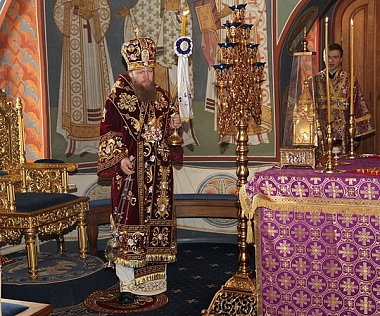 Владыке сослужила братия монастыря в священном сане.