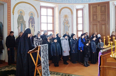 За богослужением молились настоятельница Аносиной обители игумения Мария (Солодовникова) c сестрами и прихожане.