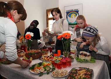 Уральскую тему в кулинарии раскрыли представители Воскресной школы «Малахит» храма в честь Праведного Симеона Верхотурского. Их стол был сервирован расписанными под малахит блюдами, в которых находились уральские постные пельмени, вареники и самая простая юшка, придуманная на Урале. Разнообразие и большой выбор рыбных блюд согласно уставу Вербного воскресенья продемонстрировала Воскресная школа «Патмос» храма во имя Святых Жен-Мироносиц в Марьино.
