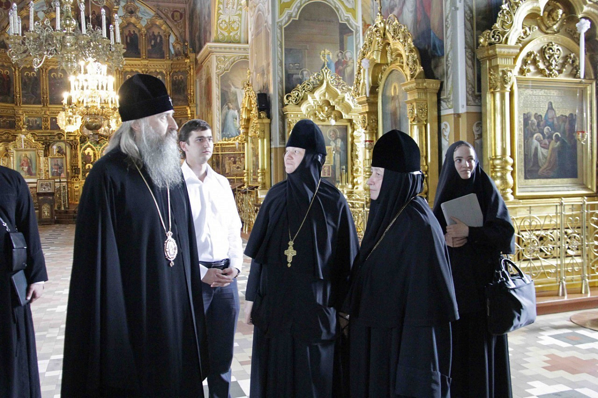 3 июля, в среду, прибывших в обитель гостей встретила настоятельница монастыря игумения Рафаила. Владыка Феогност и другие гости обители поклонились главной святыне монастыря – чудотворному образу Божией Матери «Споручница грешных», ознакомились с достопримечательностями монастыря и посетили Регентско-катехизаторское духовное училище.