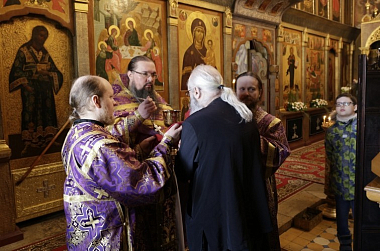 Проповедь перед Причастием произнес иеромонах Кирион (Сунцов).