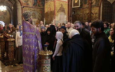 По окончании Литургии с напутственным словом ко всем присутствующим обратился наместник монастыря архимандрит Савва (Фатеев).