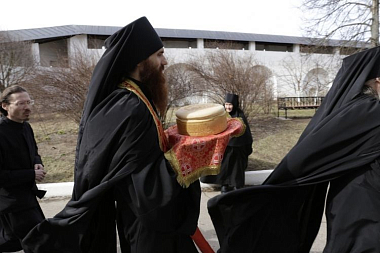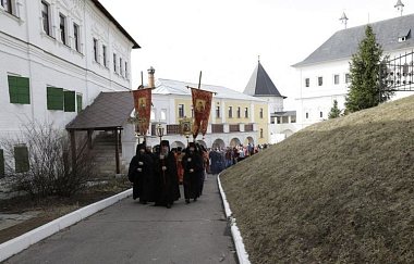 В Саввино-Сторожевском ставропигиальном мужском монастыре, как и во всех православных монастырях и храмах, в течение всей Светлой седмицы по окончании Божественной литургии проходил крестный ход.