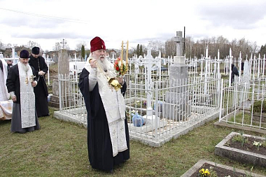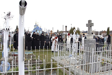 Панихиду по усопшим игумениям, священнослужителям и сестрам обители на кладбище отслужил митрополит Днепропетровский и Павлоградский Ириней в сослужении монастырского духовенства, затем Его Высокопреосвященство совершил панихиду на могиле своих родителей.