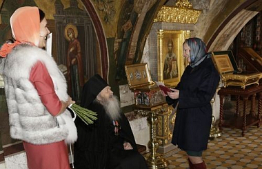 Почетную медаль «70 лет Победы в Великой Отечественной войне 1941–1945 гг.» от имени Президента Российской Федерации В.В. Путина и Главы Муниципального округа Звенигород А.В. Смирнова вручили заместитель Главы города Екатерина Николаевна Лизункова и заведующая отделом социальной защиты Ирина Александровна Удалова. Представители городской администрации поблагодарили монаха Самуила за героизм, проявленный во время Великой Отечественной войны, пожелали еще долгих лет жизни, здоровья, а также подарили букет цветов.