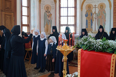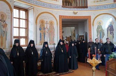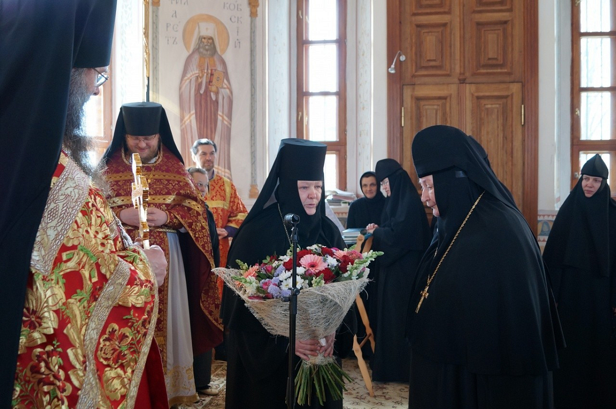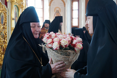 За Божественной литургией молились сестры, прихожане, воспитанницы детского приюта и гости монастыря. Поздравить матушку с юбилейной датой и принять участие в совместной молитве прибыли гости: настоятельница московского подворья Свято-Успенского Пюхтицкого ставропигиального женского монастыря игумения Филарета (Смирнова); настоятельница Покровского Хотькова ставропигиального женского монастыря игумения Олимпиада (Баранова); настоятельница Богородице-Рождественского ставропигиального женского монастыря игумения Викторина (Перминова).