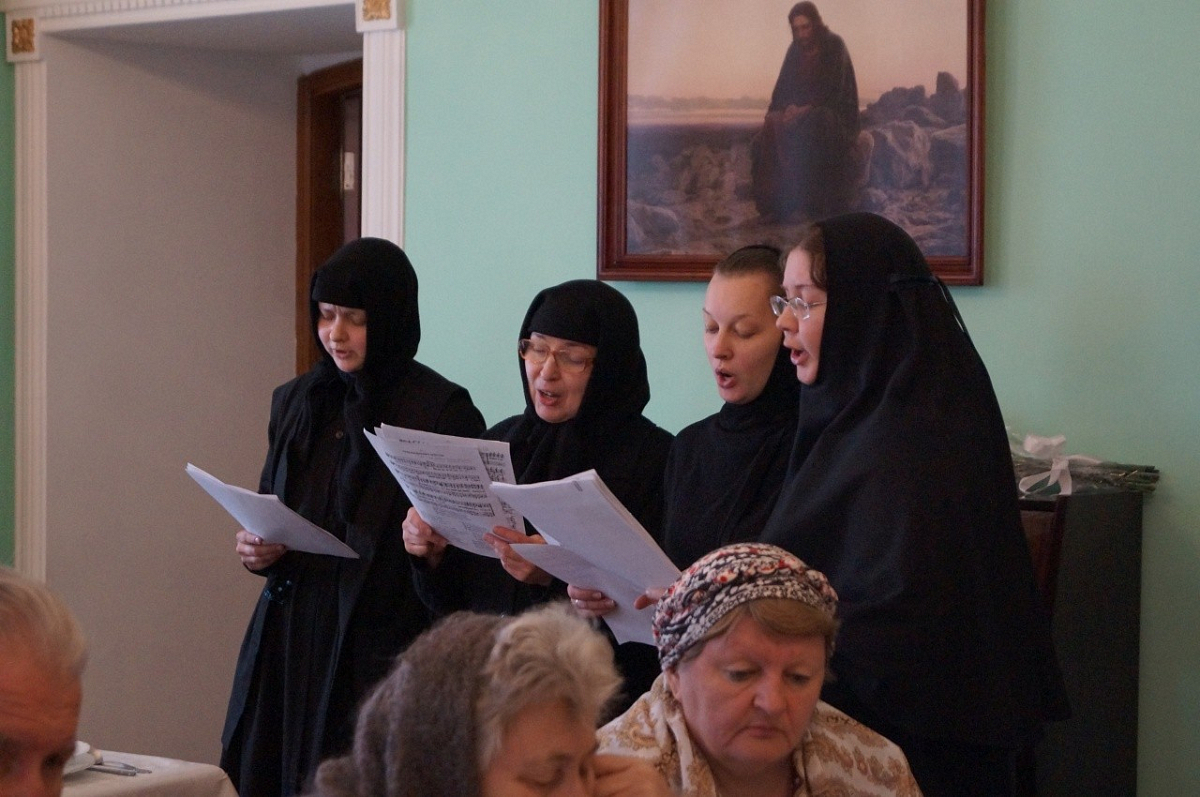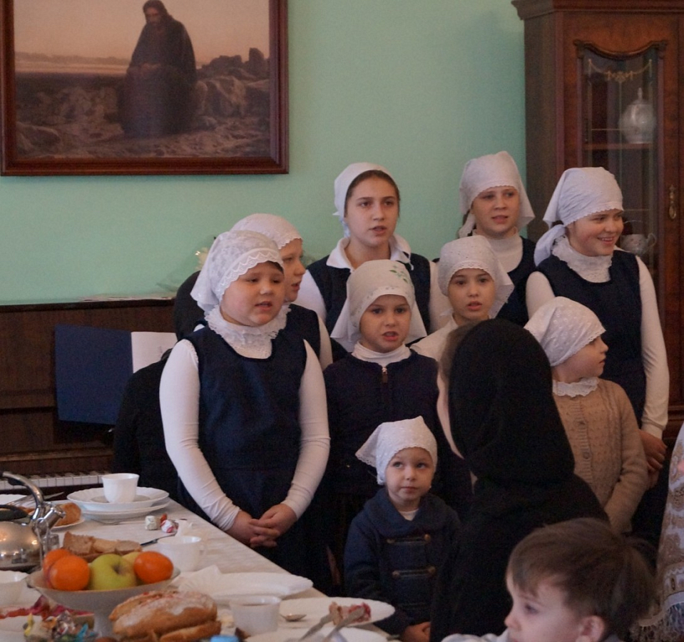 По окончании праздничной трапезы состоялся небольшой концерт: сестры исполняли песнопения, а дети выступили с песнями и стихами.