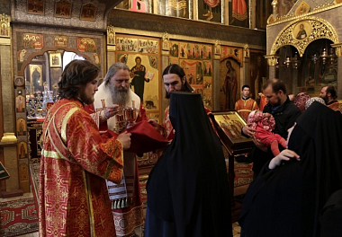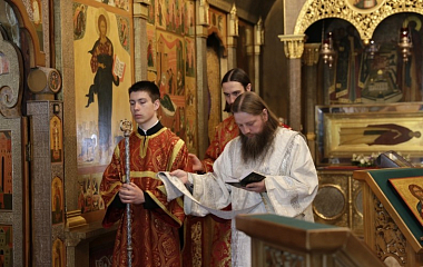 За богослужением архиепископ Феогност совершил хиротонию в сан иеродиакона насельника Саввино-Сторожевского монастыря инока Зосимы (Лунева).