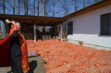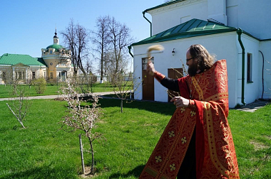 По завершении молебна священнослужители, сестры и прихожане обители крестным ходом с молитвенным пением обошли монастырские поля, огороды, теплицы, пчельник, коровник, курятник и сад. Поля и животные были окроплены святой водой с молитвой о даровании земле плодородия, животным – здоровья и плодовитости, а также об избавлении от вредителей и стихийных бедствий.