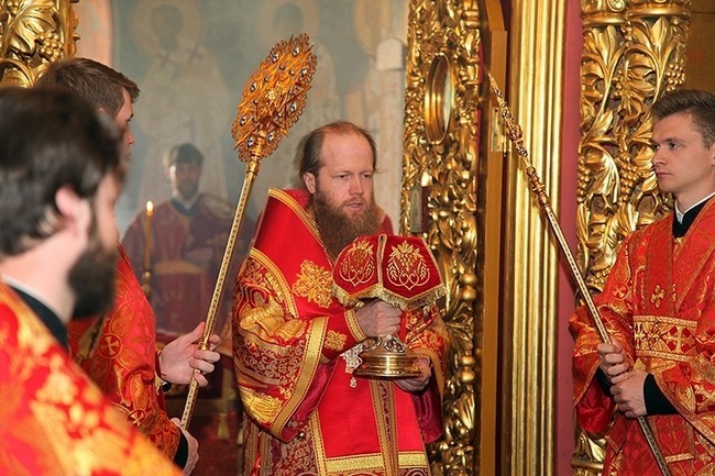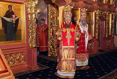 Преосвященным сослужила братия обители в священном сане.