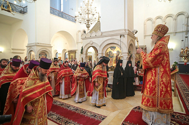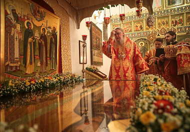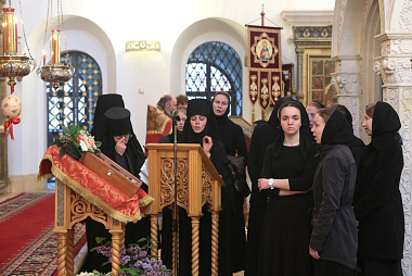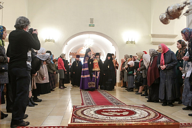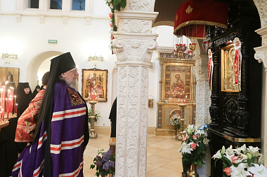 По окончании Литургии был отслужены краткие молебны перед чудотворной иконой Божией Матери «Милостивая» и у гробницы преподобных Иулиании и Евпраксии в Казанском приделе монастырского собора.