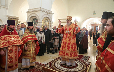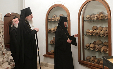 Владыка Серафим посетил также и подземный придел собора во имя Преподобных отцев и матерей и совершил в костнице, где находятся останки монастырских сестер, заупокойную литию с молитвенным поминовением игумений и монахинь обители.