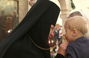 «Честная матушка игумения Иулиания! Дорогие отцы, братья и сестры! Всех приветствую со всемирным радостным восклицанием и долгожданным для всей истории человечества событием – Христос Воскресе!