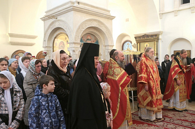 Позднюю Божественную литургию в приделе собора по благословению Святейшего Патриарха Московского и всея Руси Кирилла возглавил епископ Серафим в сослужении монастырского духовенства и священнослужителей-гостей обители. Перед началом богослужения вокруг обители был совершен крестный ход во главе с Его Преосвященством.